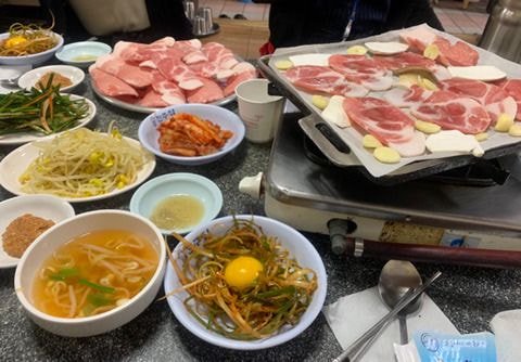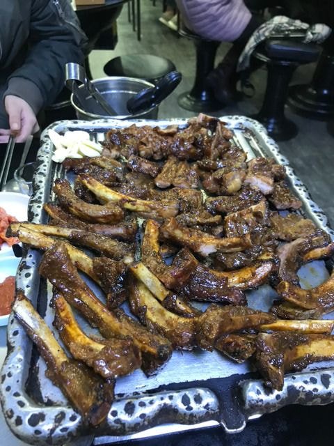 연탄에서 구워져 나오는 돼지갈비가 생각보다 존맛이며 고추장에 찍어 먹는 것이 매력적임