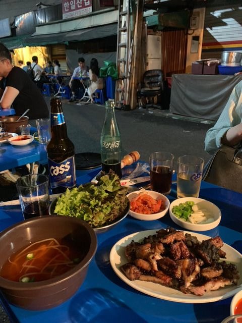 노상 테이블이 쫙 깔려있는 포장마차 고기집의 끝판왕. 밤에 가면 분위기가 미쳤음