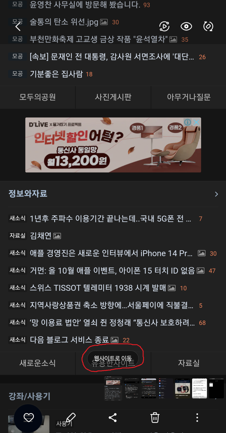 갤러리 >> 캡쳐이미지 >> 웹사이트로 이동 선택