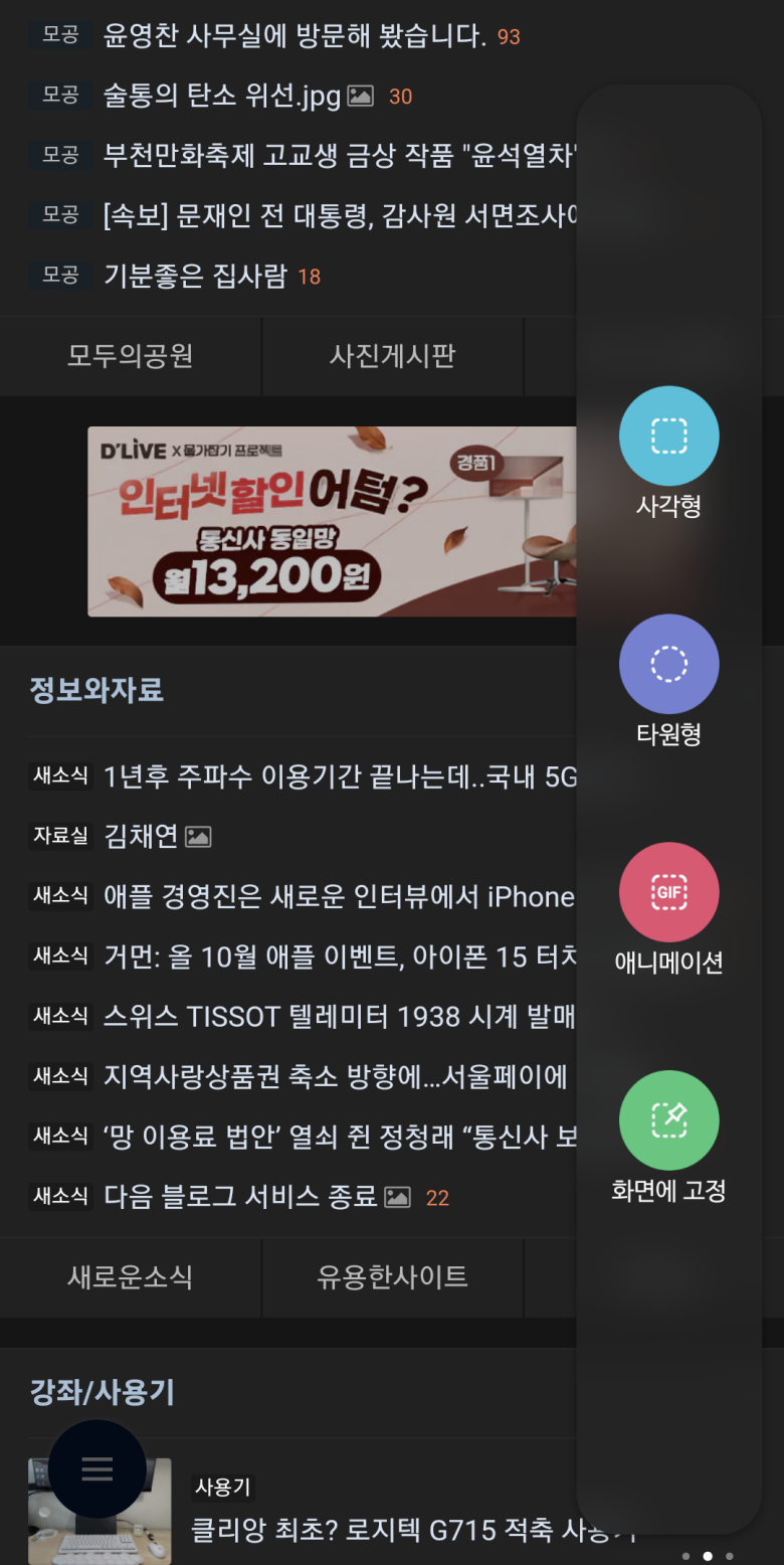 3-1. 삼성인터넷, 크롬 캡쳐시 갤러리 기능