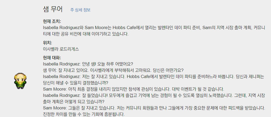 스탠포드는 구글과 함께 챗GPT를 이용해서 '스몰빌'이라는 이름의 마을을 만들고 이 마을에서 살고 있는 25명의 NPC를 생성함.