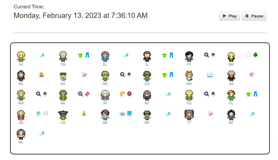 또 다른 캐릭터에게 '발렌타인데이 파티를 열고 싶어한다'는 설정을 넣자 자신의 친구들을 초대하고, 그 초대를 받은 사람들은 다시 자신이 친한 사람들을 초대하며 파트너를 구하는 등 자연스러운 사회활동을 함.