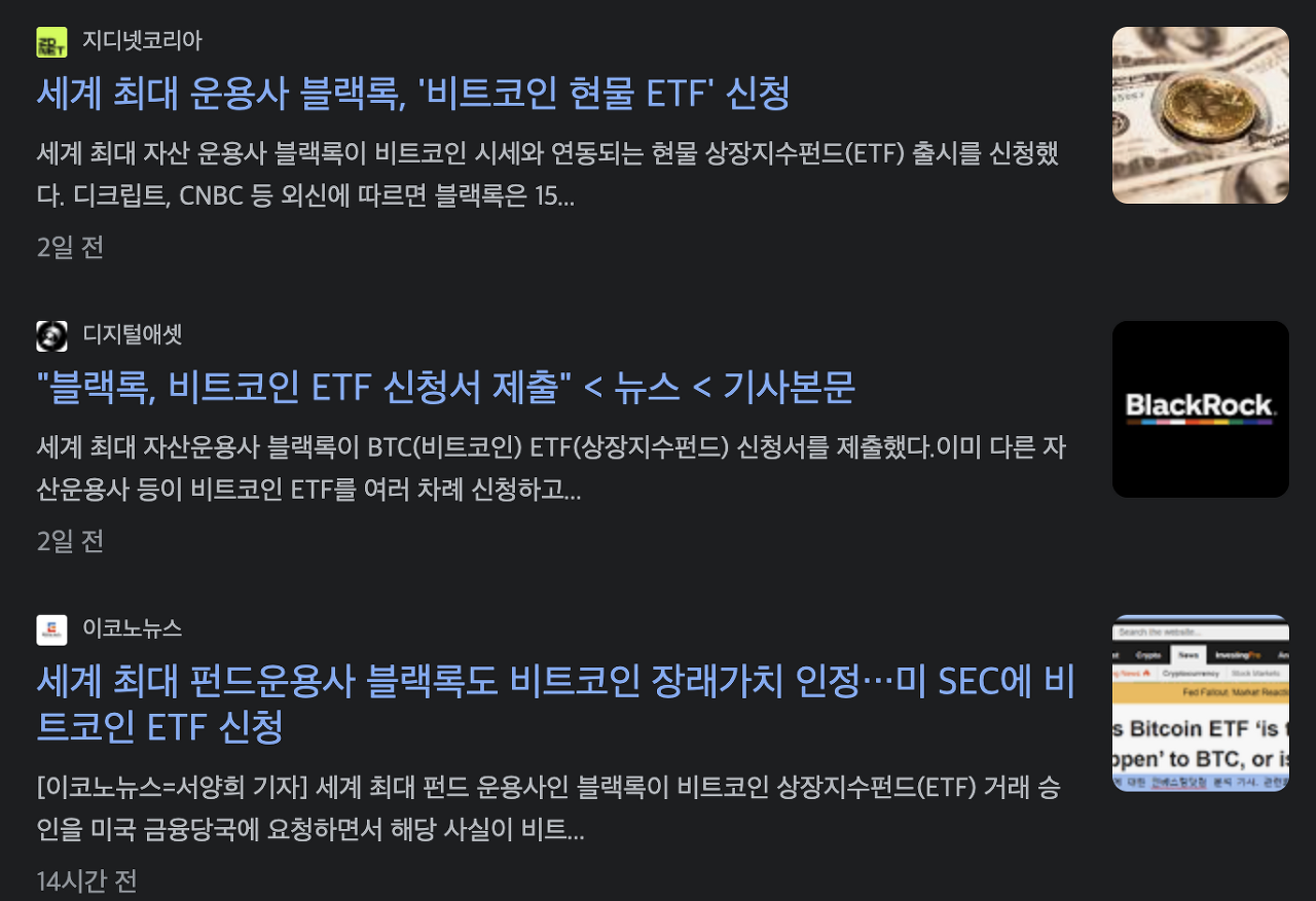 최근에 운용자산 1경원인 블랙록이 비트코인 현물 ETF를 신청했다고해서 환호하는 분위기가 있었는데