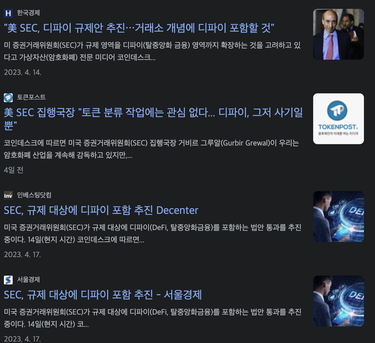 2. 디파이에 대한 SEC의 입장은 스캠,사기라는 쪽으로 일관됨 또한 디파이 역시 규제안에 들어오게 될 것으로 보임
