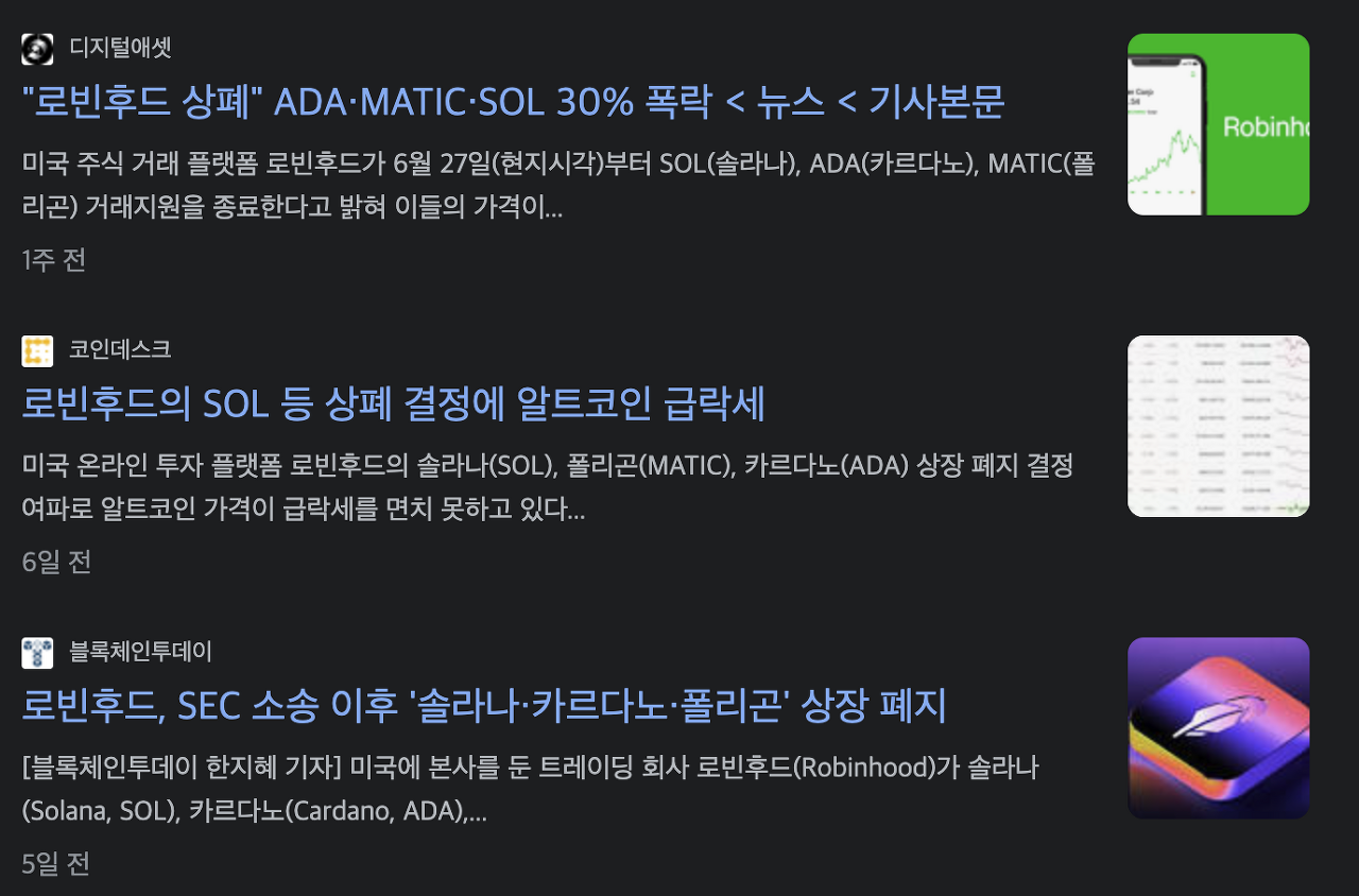 1. SEC가 특정 알트코인들을 증권으로 분류하면서 로빈후드 같은 메이저한 곳에서 상폐가 되고 있음