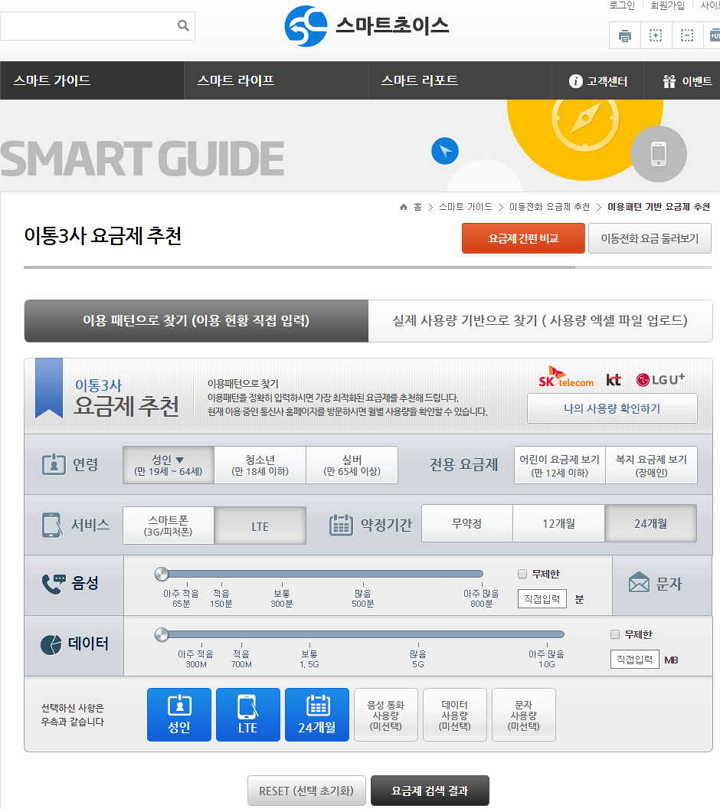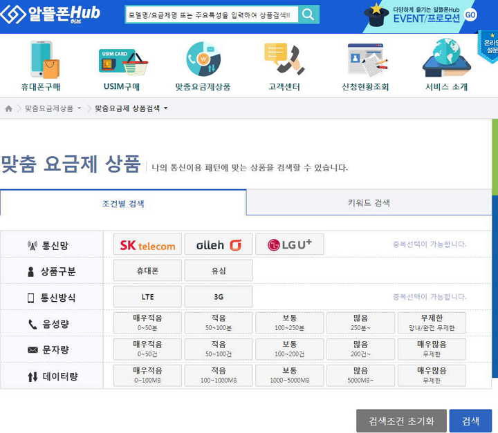 전에 스마트초이스와 알뜰폰허브를 링크한 적 있는데, 요즘 알뜰폰허브를 이용해보니 꽤 쓸만해졌더군요. 마치 다나와로 컴퓨터부품 검색하는 것 같습니다. ㅎㅎ