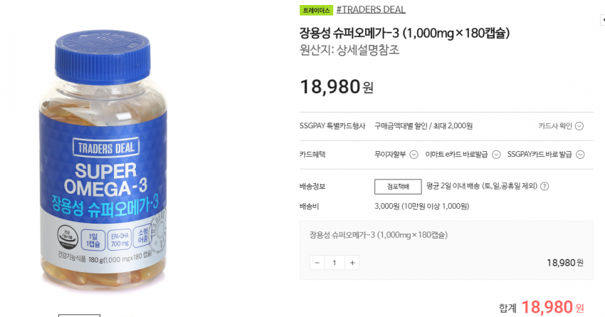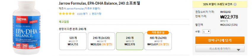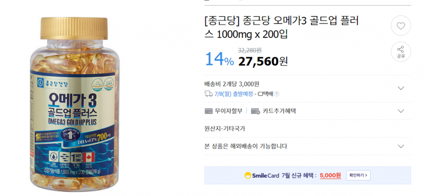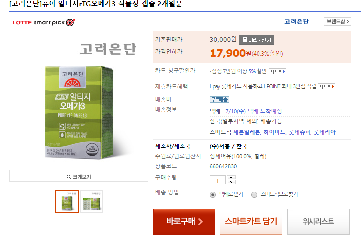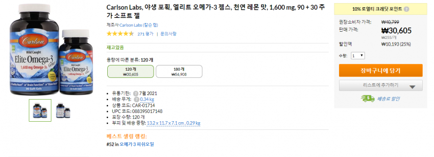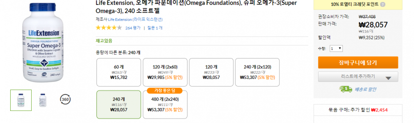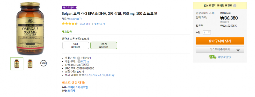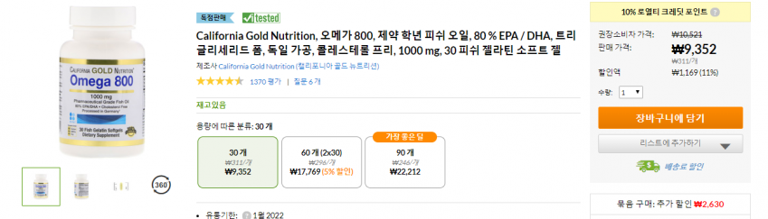 개별포장등 국내 오메가3 제품중에선 가장 괜찮아보인다.