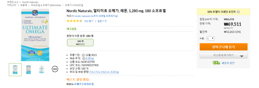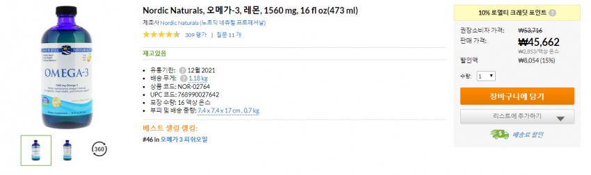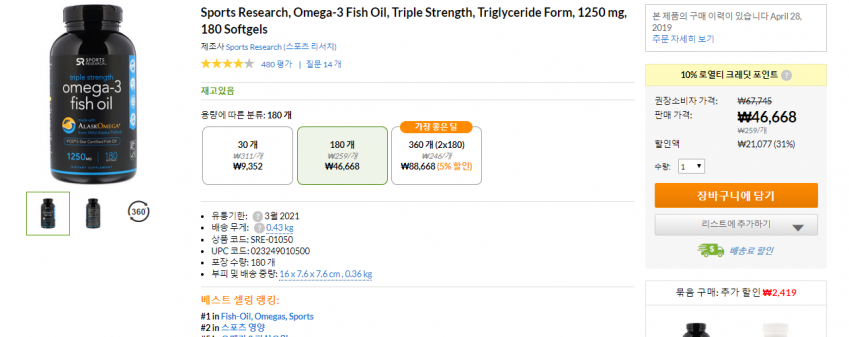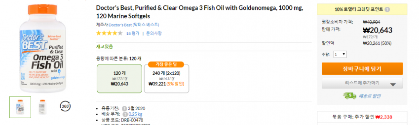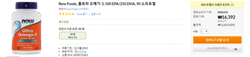 그러나 오메가3 자체가 워낙 원료라든지 공정이라든지 많이타기때문에 그렇게 추천하고싶지는않다.