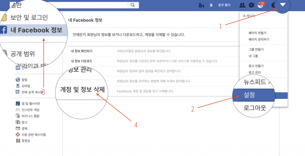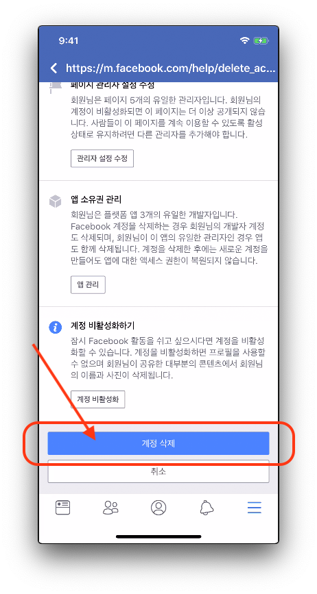 페이스북 탈퇴 및 계정 영구 삭제하기 | 모바일
