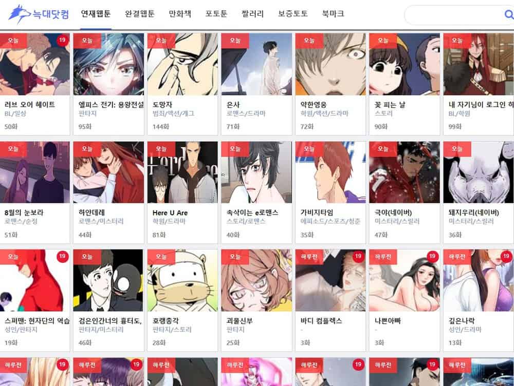 | 제공 서비스 | 연재웹툰, 웹툰요청, 북마크, 야동망고 |