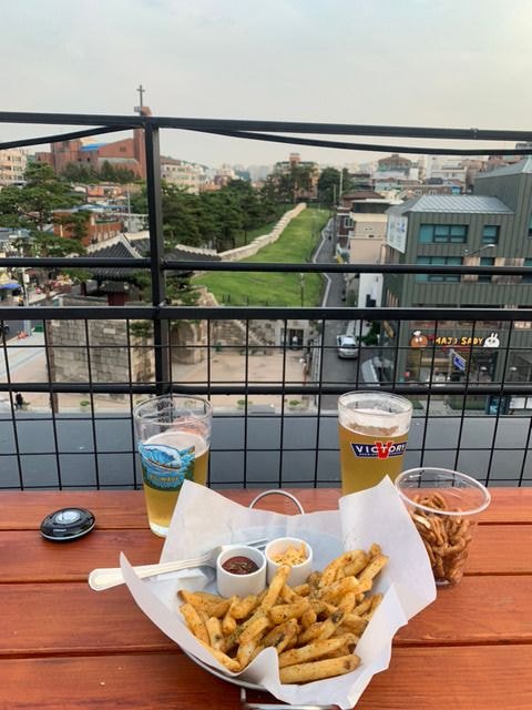 루프탑에서 감튀, 피자와 함께 맥주를 마시며 여유롭게