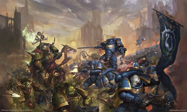 ( 타락한 스페이스마린군단 '데스가드' 를 상대하는 인류제국 스페이스마린 '울트라마린' )