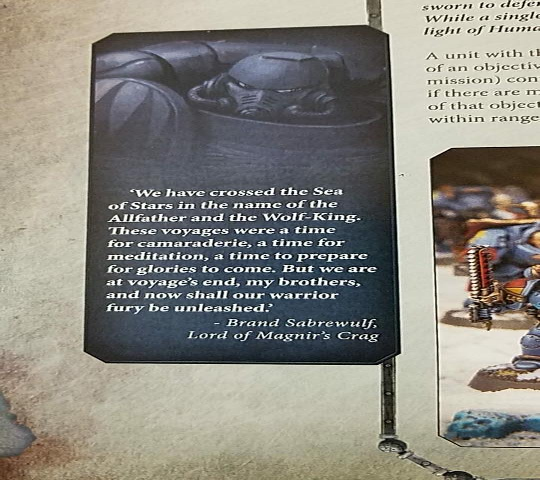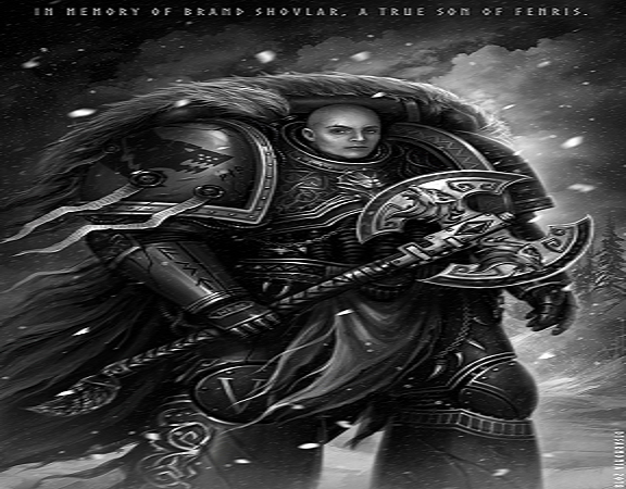 그를 위해 실제 롤북에 모티브한 스페이스 울프 마린 캐릭터를 실어준 워해머