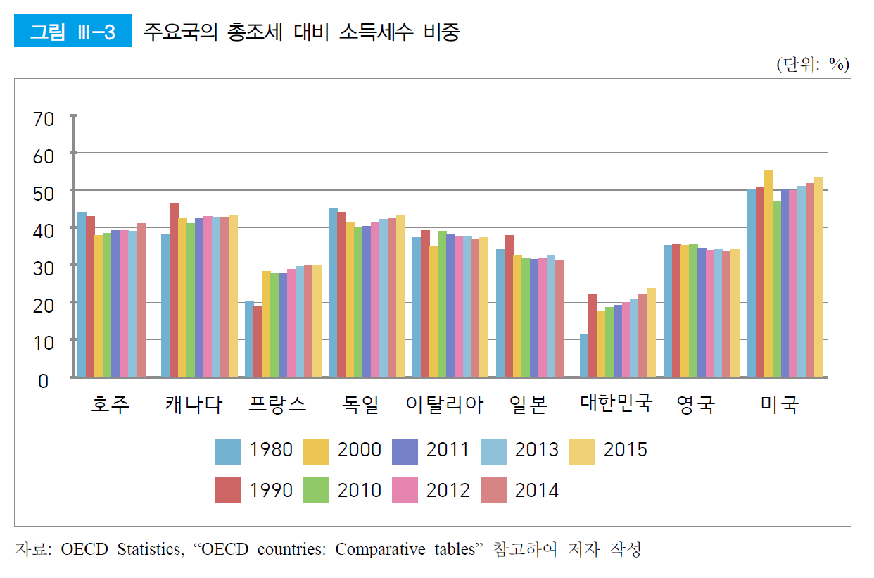 선진국일수록 소득세의 비중이 높고, 부가세의 비중이 낮은데 한국은 후진국형 세금구조를 가지고 있다.