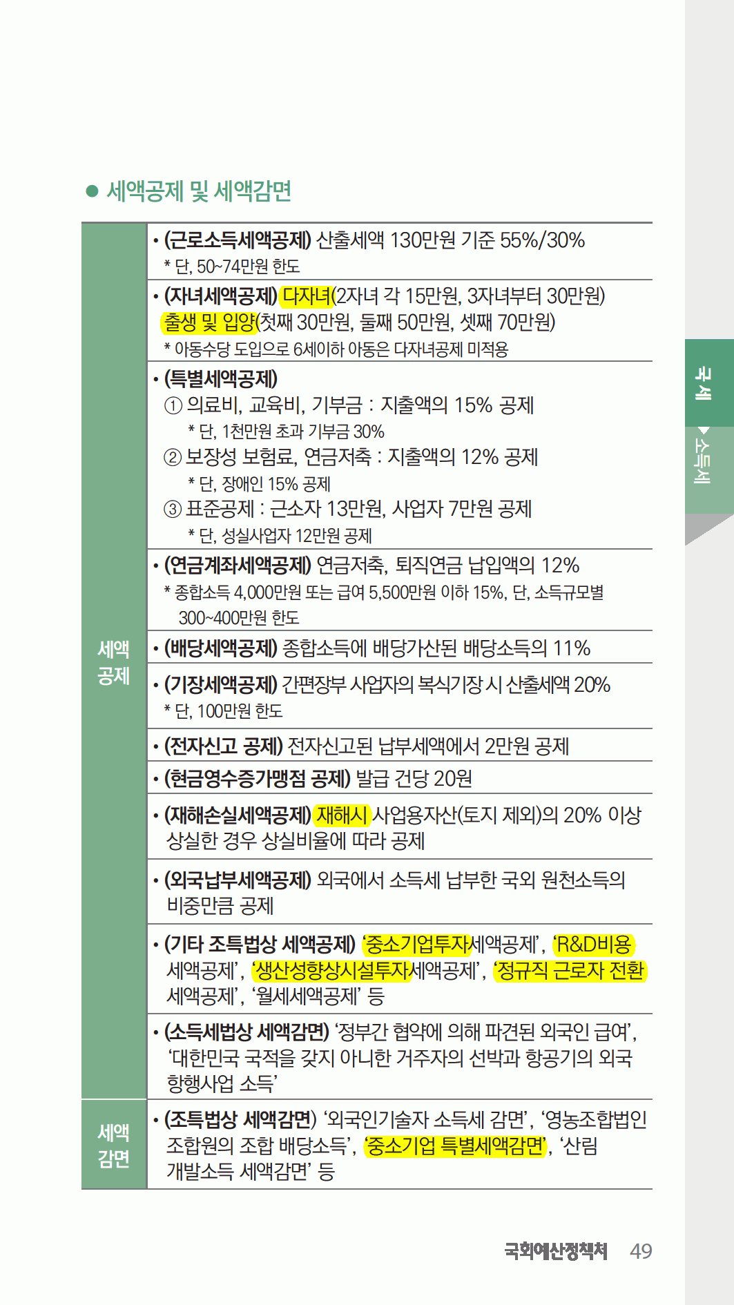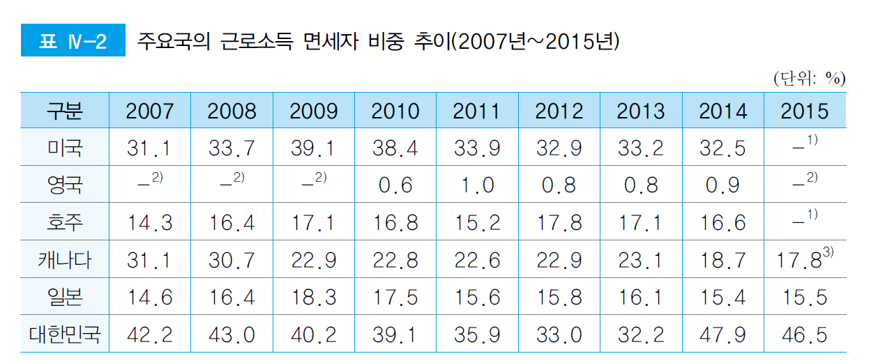 3. 선진국에 비해서 세금 공제나 감면이 많다. 중간소득 이하에게 유리하다.