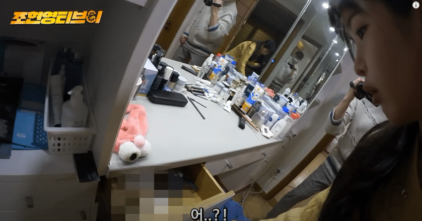 딘딘 나간 틈에 유툽각 나올만한 물건 ( = 콘돔 ) 찾아 헤매는 조현영