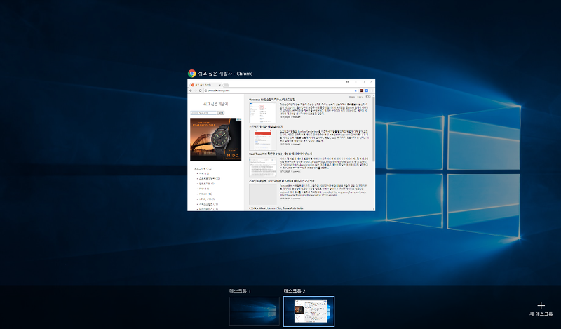 새 가상 데스크톱 만들기 : Windows Key + Ctrl + D