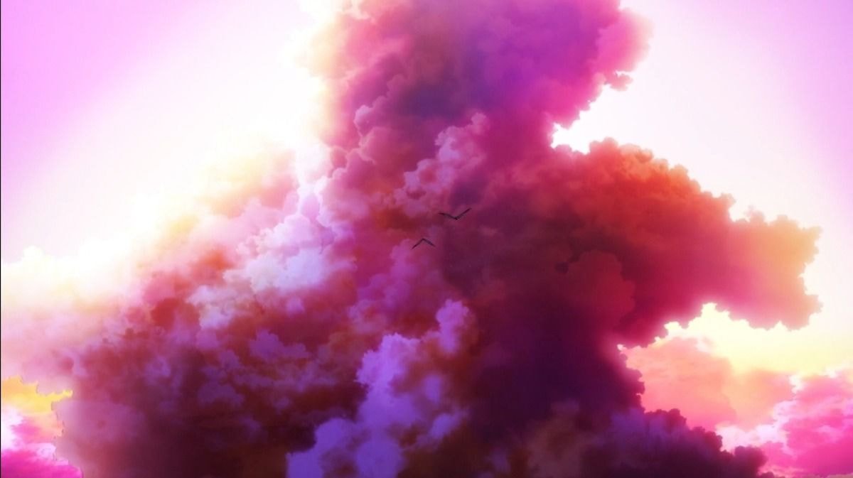 그 순간 뭉게구름을 향해 날아가는 두마리 나비