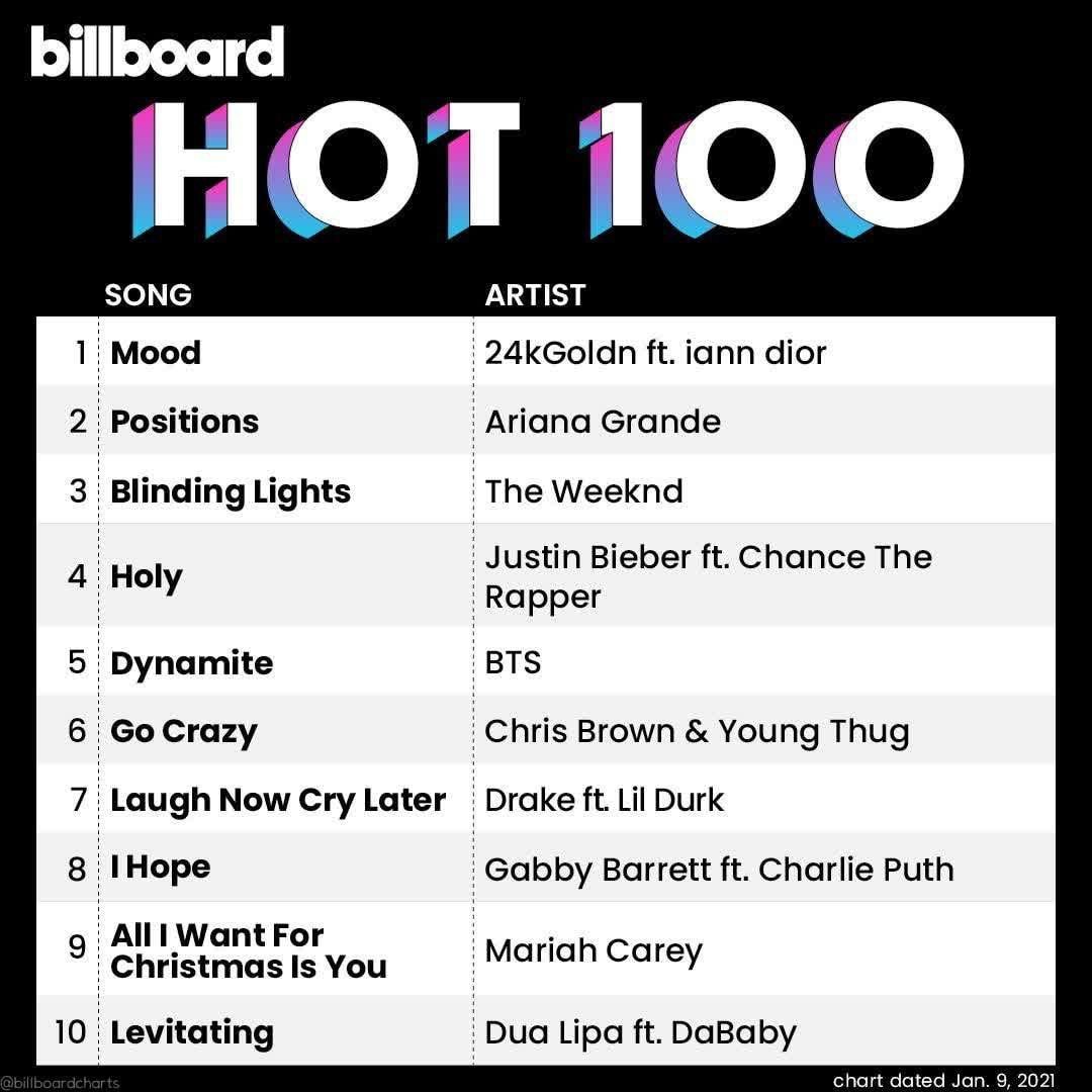 Billboard Hot 100: #5(+39) Dynamite, @BTS_twt [19 weeks]. *peak: #1 for 3 weeks*