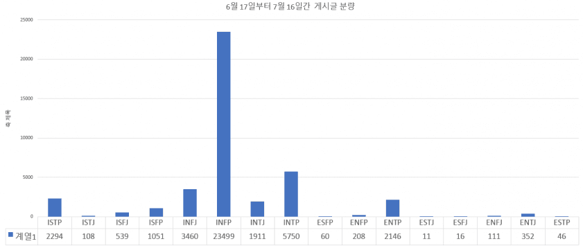 게시글 숫자는 INFP가 압도적으로 많았다.