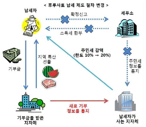 진학이나 취업으로 도시에 살고 있는 사람이, 본인의 고향 혹은 다른 지자체에 납세 하는 제도