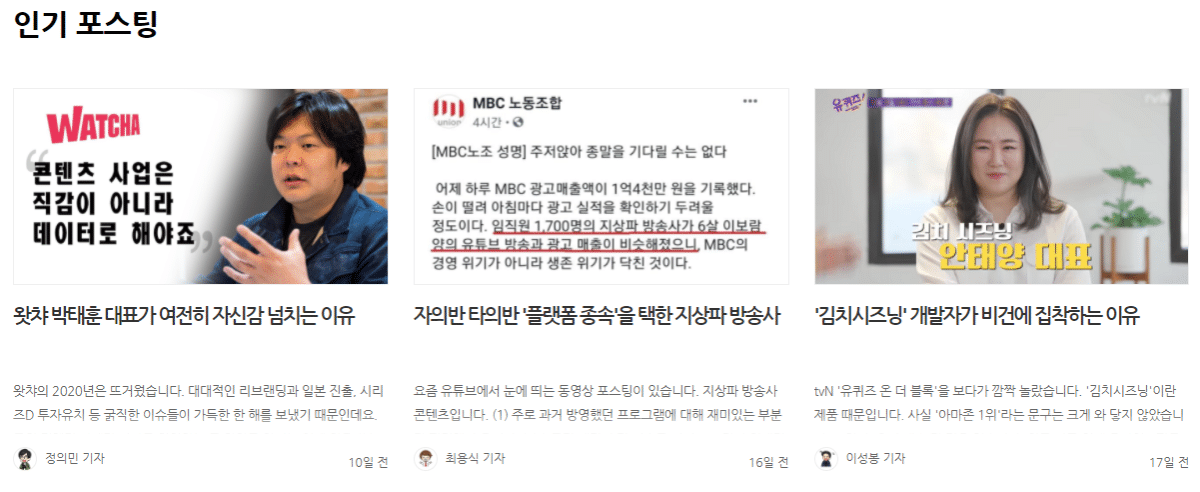 (커리어, 라이프스타일, IT 등 다양한 주제의 콘텐츠 제공) - 익명의 무묭이 추천해줘서 봤는데 사이트부터 퀄리티 엄청 좋은 것 같음....... 아주 맘에 들어 ;ㅅ;