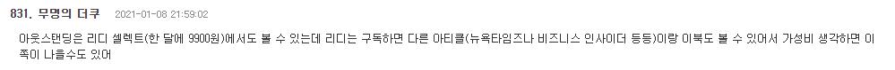 리디는 구독하면 다른 아티클 (뉴욕타임즈나 비즈니스 인사이더 등등) + e북도 볼 수 있어서 가성비 따지면 이쪽이 나을 수도 있따