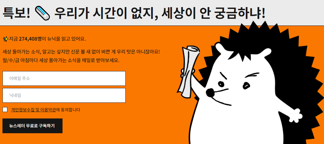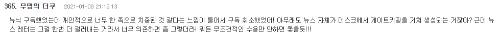 뉴닉 구독했었는데 개인적으로 너무 한쪽으로 치중된 것 같다는 느낌이 들어서 구독 취소했었어.