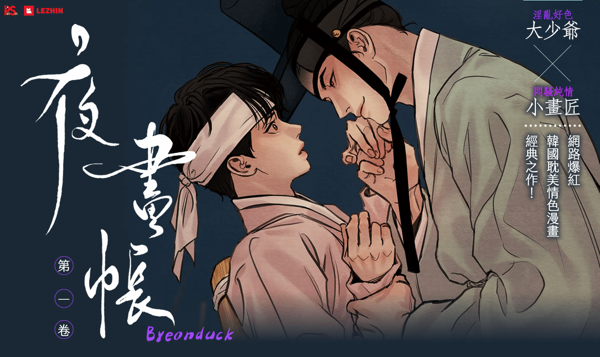 야화첩은 양반가 망나니 도령 x 춘화를 그리는 춘화가 사이의 이야기를 그린 비엘웹툰.