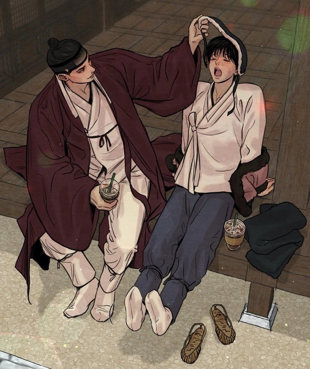 휴재공지때 올라온 일러스트인데....약간...야화첩 촬영하다 쉬는시간 느낌.