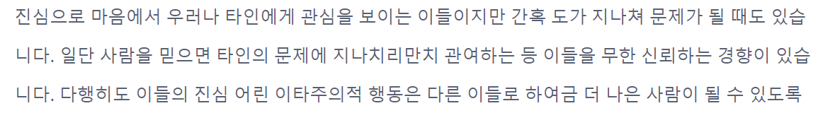 ENFJ는 다정하고 남에게 잘 맞춰주는 특징이 있습니다.