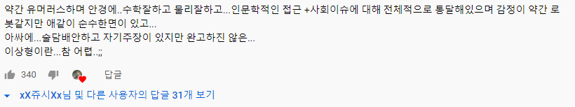 9. 지적이라서 본인이 좋아하는 분야에 토론해주는 사람 선호함