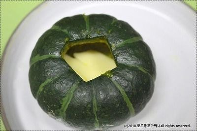 단호박을 전자렌지에 넣고 돌린 다음 속을 파냄
